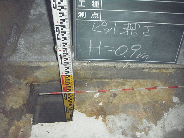 特定有物質を排水する埋設配管や、ピット、マスがあれば、それらの底面から50cmの土壌試料を採取して分析します。この場合は、上下2深度の土壌試料を混合せず、50cm間の土壌試料を採取します。