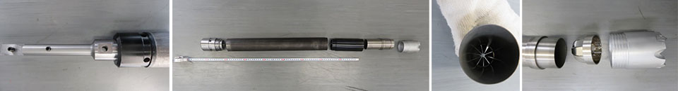 コアチューブに逆止弁ボールとバスケットを装着し、緩い地層でも試料を採取します。