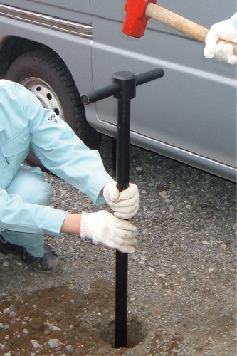 - ガラがじゃまして、どうにも土壌試料採取ができない