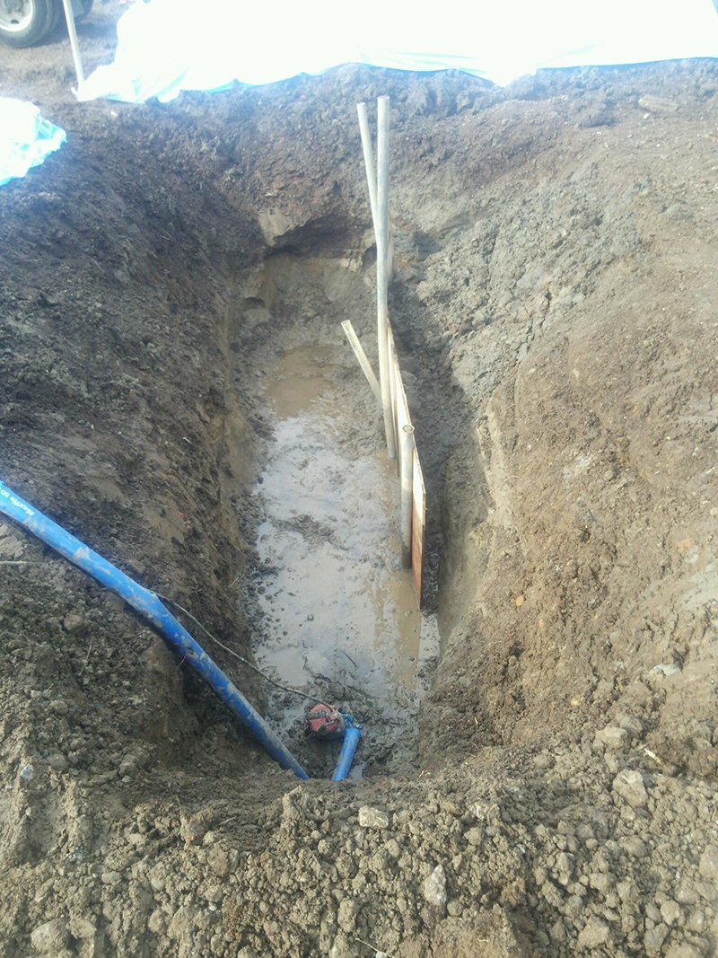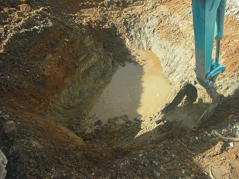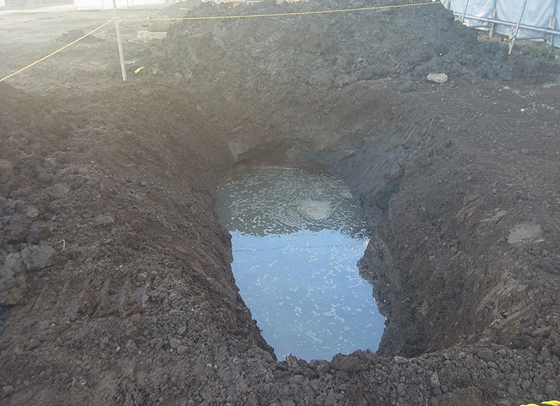 想定より浅い深度に地下水がありました。