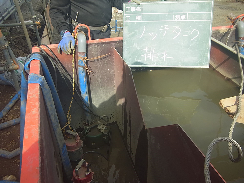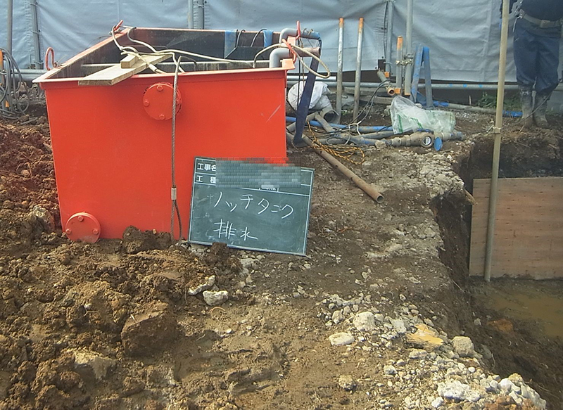 この現場では、自治体の指導により、排水系統に水量計を設置して、排水量を計測しました。