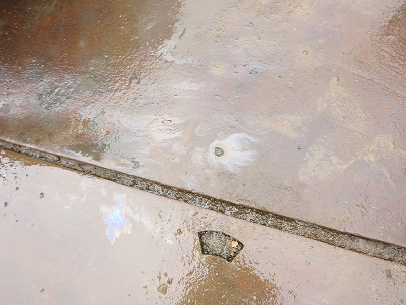 このように、飛散した汚染土壌が回収されておらず、鋼板の下にシート養生をしていませんでした。環境保全対策が十分とはいえず、現場責任者を厳重注意し、早急な対応を実施しました。