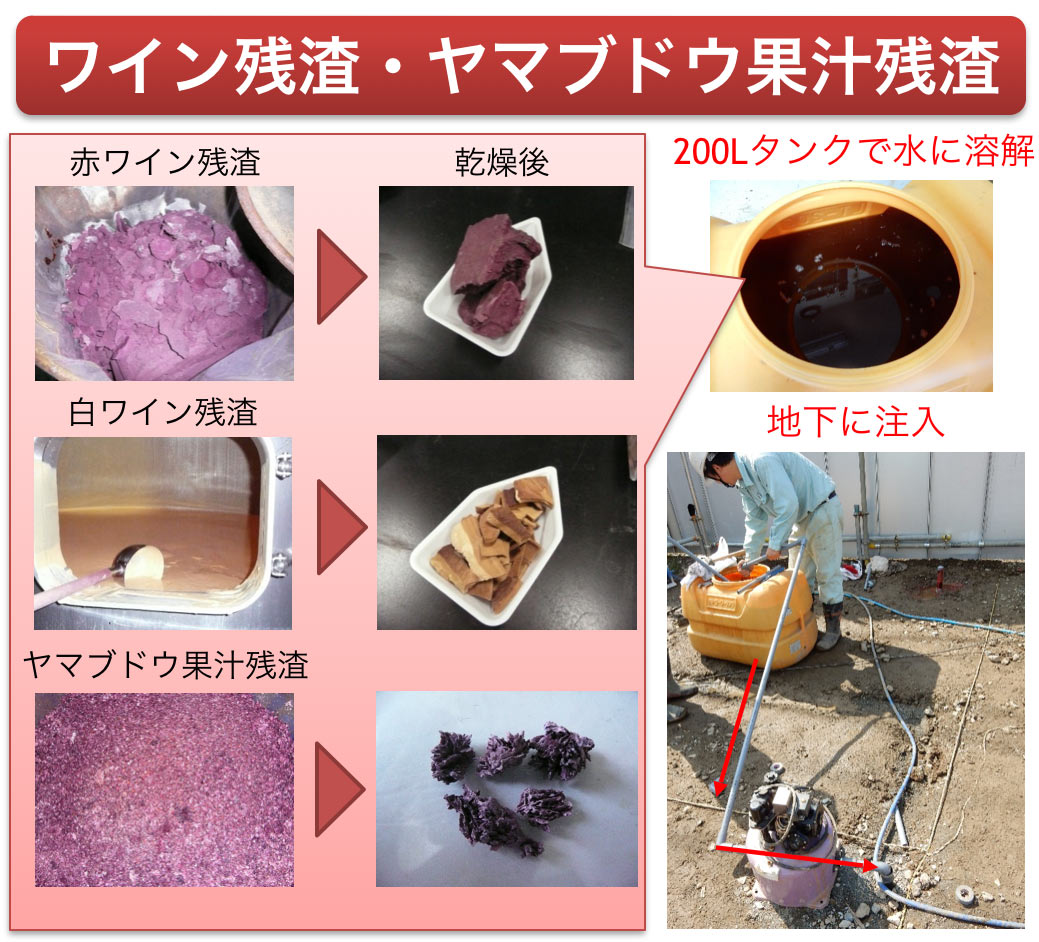 ワイン残渣・ヤマブドウ果汁残渣を利用した過硫酸法によるVOC 汚染浄化実証試験