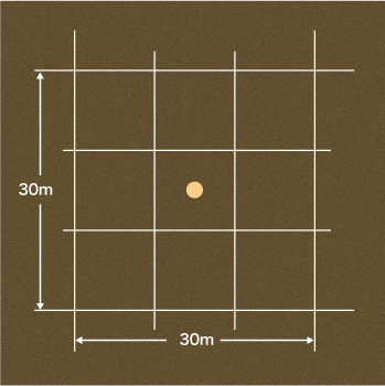 | 土壌汚染のおそれが少ない土地 30m格子(900㎡)に1地点の割合で調査をします。 |